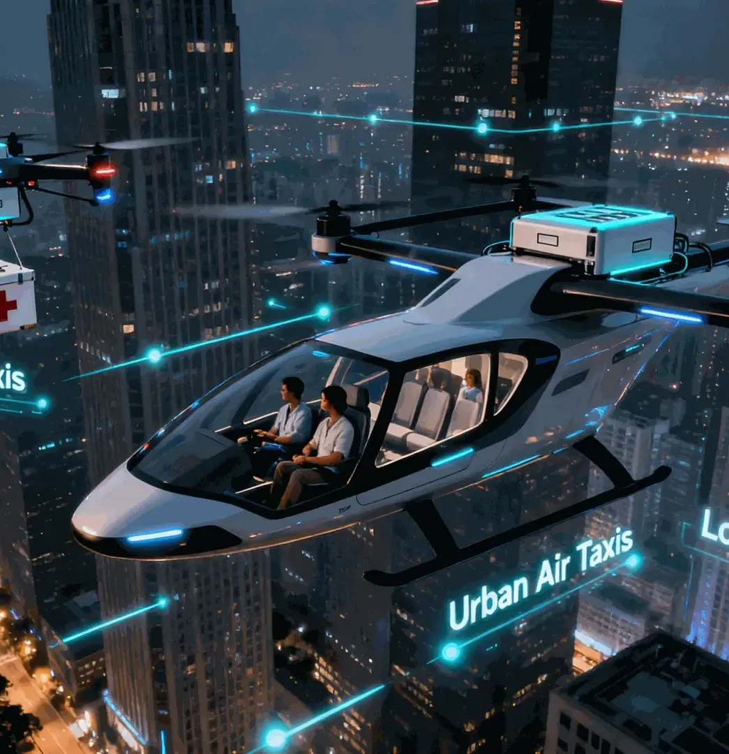 Air taxis and logistics benefit from long-distance, efficient XRBT power.