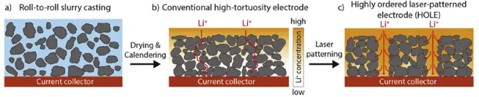 Traditional battery electrodes are usually flat or randomly porous structures, where ion transport relies on uncontrolled pathways, leading to: